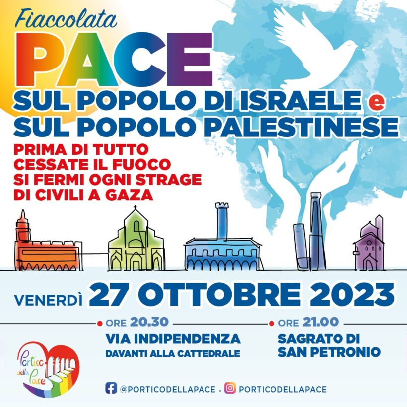 Accogliendo l’invito di Papa Francesco per la giornata mondiale per la pace nel mondo di domani 27 ottobre, successivamente alla Veglia ecumenica dei cristiani nella Cattedrale di S. Pietro a Bologna alle ore 19, invitiamo tutti i cittadini artigiani di pace alla fiaccolata pace per il Popolo di Israele e per il Popolo Palestinese!