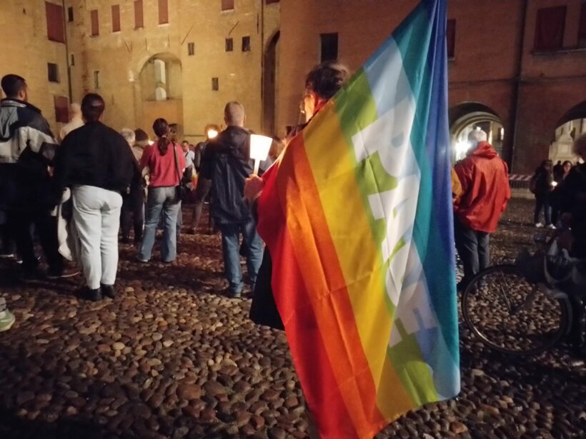 Nonostante la pioggia, oggi Ferrara ha visto un centinaio di persone radunarsi in Piazza Castello nella fiaccolata promossa dalla Rete per la Pace Ferrara: “Israele-Palestina: Fermiamo la violenza! Riprendiamo in mano la pace”. Le uniche bandiere presenti erano, appunto, quelle della pace.