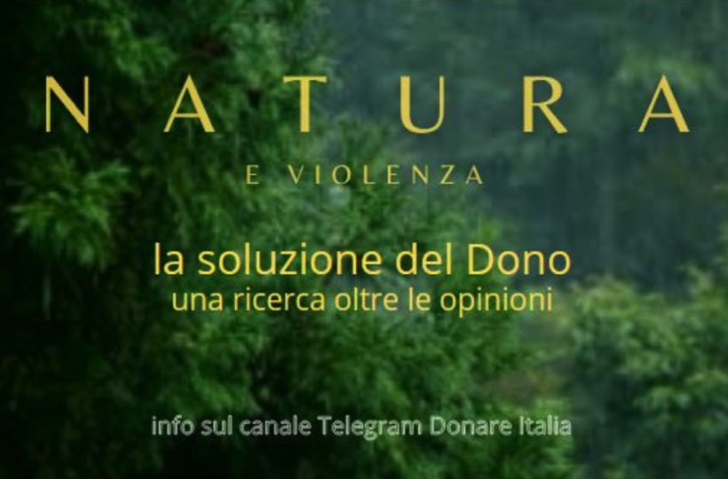 La Natura oltre la violenza. Il Dono come soluzione. La conferenza che avrà luogo il 23 ottobre a Taverne, un comune nei pressi di Lugano, Svizzera, sarà la prima di una serie, alla ricerca di cause e soluzioni, oltre le opinioni, riservata a chi partecipa per ascoltarsi e per ascoltare.