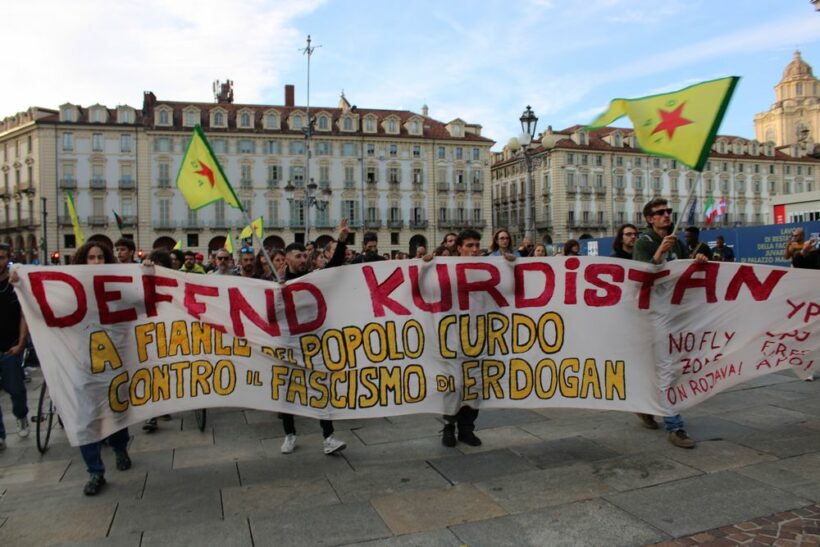 Al corteo hanno partecipato anche i cinque ragazzi torinesi appena rientrati in Italia dopo qualche giorno di detenzione nelle prigioni turche; gli attivisti sono stati arrestati il 12 ottobre scorso dalle forze di sicurezza turche poco prima di una conferenza stampa convocata dai partiti d’opposizione a Sanliurfa (Riha in curdo).[1]