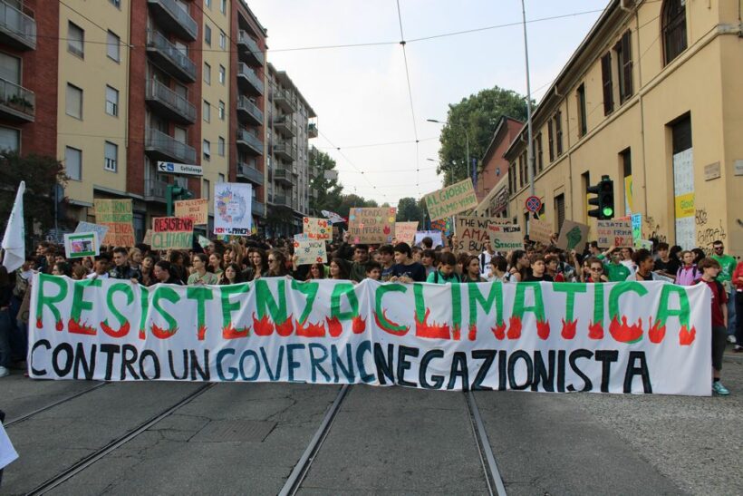Durante il percorso il corteo si è fermato in vari momenti per permettere gli interventi di organizzatori e partecipanti; davanti alla sede storica di Italgas due militanti di Extinction Rebellion si sono arrampicati sui lampioni per installare uno striscione con la scritta “Governo negazionista – stop investimenti fossili”.