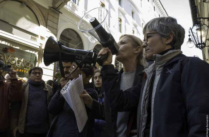Siamo partite pensando a un flash mob artistico, con lo slogan #non restiamo MUTI (la legione Ettore Muti era il nome del corpo militare del regime fascista con compiti di polizia politica che operava con violenze e torture all’interno dell’attuale sede del teatro), perché siamo rimaste molto colpite dal silenzio che è seguito alla nomina di Geronimo La Russa al CDA del Piccolo Teatro. Noi appunto non volevamo che questa nomina passasse sotto silenzio: ci è sembrata una vera e propria offesa al teatro, per la storia che lo contraddistingue. Speravamo che, per opportunità, la nomina fosse revocata, ma così non è stato: il nuovo CDA si è già insediato con la nomina degli altri consiglieri nominati dal Sindaco di Milano.