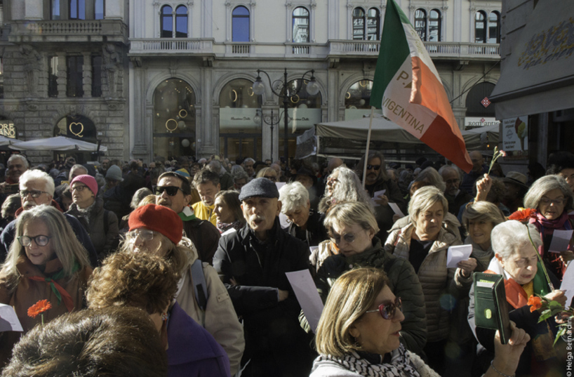 Quindi l’indignazione di tanti è aumentata e siamo state letteralmente travolte dalle adesioni (a centinaia) e dall’interesse dei media. Solo in piazza abbiamo raccolto circa 600 firme. È stato tutto molto travolgente, tantissime persone hanno cantato con noi, soprattutto Ma mì (la celebre canzone scritta da Giorgio Strehler) e si sono messe in fila per firmare il nostro appello e depositare un fiore in omaggio alla targa affissa sulla facciata del teatro. Tra le tante firme anche quelle di Tiziana Pesce, Claudia e Silvia Pinelli, Maso Notarianni – che ha firmato a nome di Arci Milano -, e naturalmente tante sezioni Anpi, milanesi e non solo. Per via telematica hanno aderito anche Paolo Rossi, Sabina Guzzanti e Haidi Giuliani.