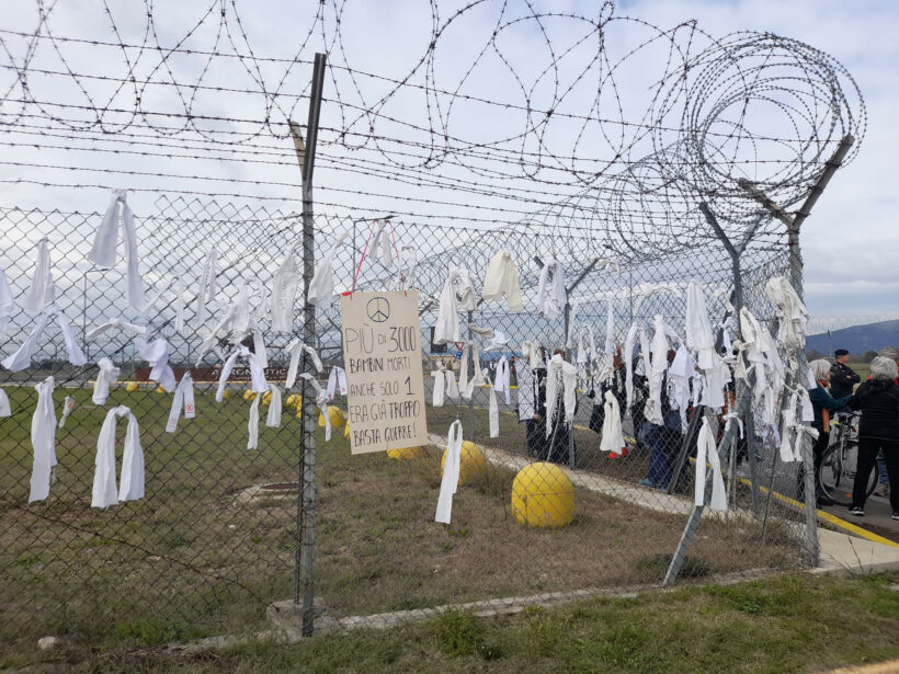 E così è successo che sabato 4 novembre, mentre in parecchie città italiane e del mondo ci si preparava per le manifestazioni sempre più partecipate in solidarietà con la Palestina, nella città di Brescia un tot di donne si sono date appuntamento in Piazza della Loggia (luogo quanto mai significativo) e hanno cominciato a marciare verso la base militare di Ghedi. Destinazione ovvia per “il potenziale di distruzione e di morte” ma per niente ovvia anzi ‘problematica assai’ per le autorità competenti, data la ricorrenza: il 4 novembre, Festa delle Forze Armate!