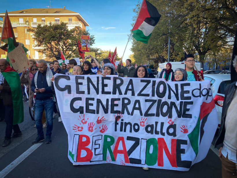 Ma fa niente, perché oggi sullo sfondo del Piazzo sventolavano bandiere palestinesi e quella periferia s’è riempita di cori a invocare la Liberazione e, pochi o tanti che fossimo, comunque tutti abbiamo “perso la voce per chi ha perso la vita”.
