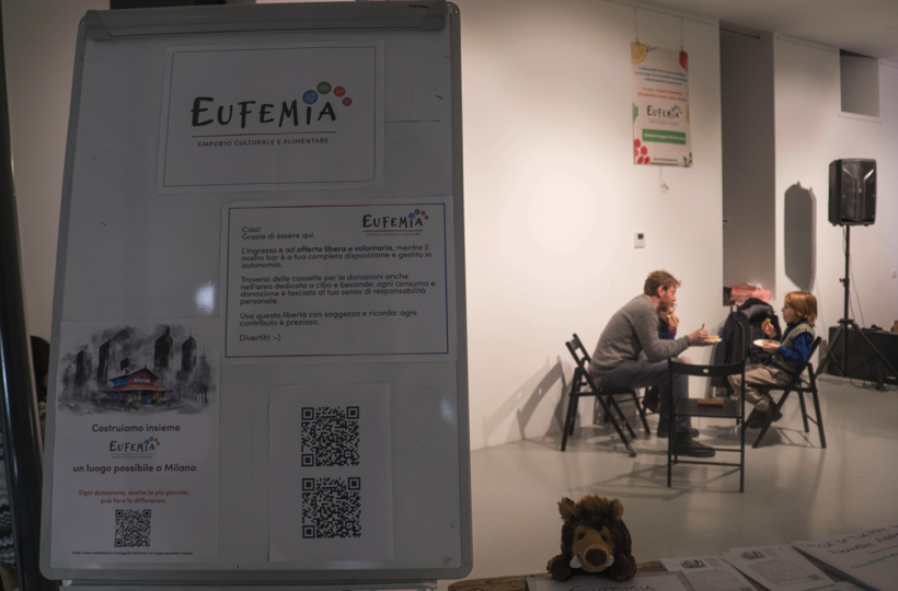 Eufemia è un progetto che nasce da un gruppo con differenti storie personali, politiche e sociali, che si è trovato a condividere l’idea di uno spazio multifunzionale: bistrot con bar e cucina, distribuzione di prodotti alimentari dell’agricoltura contadina e a filiera corta, laboratorio di sperimentazioni sociali e luogo di incontro per il quartiere.