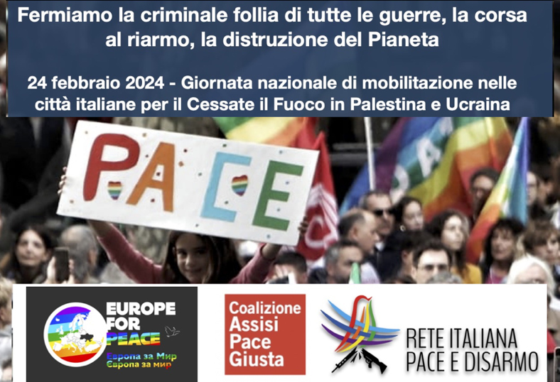 24 febbraio 2024 – Giornata nazionale di mobilitazione nelle città italiane per il CESSATE IL FUOCO IN PALESTINA ED IN UCRAINA