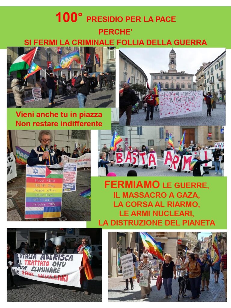 Sabato 20 gennaio 2024 in piazza Ferruccio Nazionale, dalle 11 alle 12 davanti al municipio di Ivrea (con partenza da Piazza Balla), si terrà il centesimo 100° presidio per la pace.