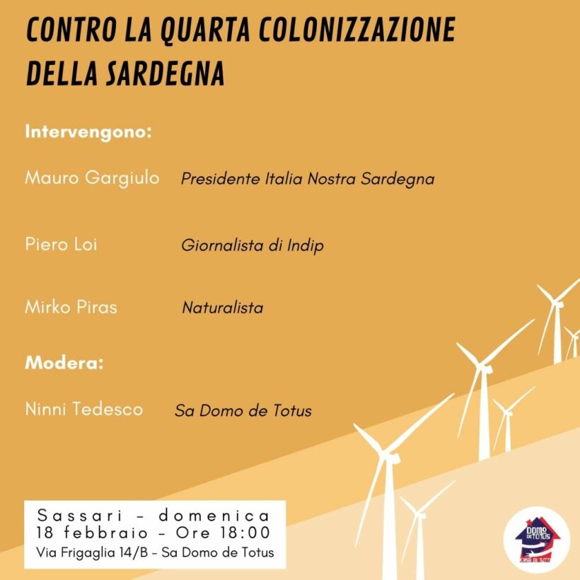 A Sassari, domenica 18 febbraio, l’associazione Sa Domo de Totus, ha radunato profili di spicco dell’ambientalismo e del giornalismo sardo che da tempo analizzano quella che gli organizzatori dell’evento chiamano «la quarta colonizzazione della Sardegna»: «all’insegna della riconversione ecologica mediante fonti energetiche “pulite” – sostiene Ninni Tedesco, vice presidente di Sa Domo – gli ultimi governi italiani hanno aperto una vera e propria caccia alle aree ricche di sole, vento e mare, ovvero un nuovo sfruttamento del meridione e delle isole, Sardegna in testa».