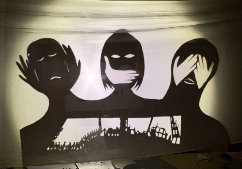 Ed è a quel punto che nasce una poesia, la poesia del teatro delle ombre , opera dell’artista Anusc e del compagno .