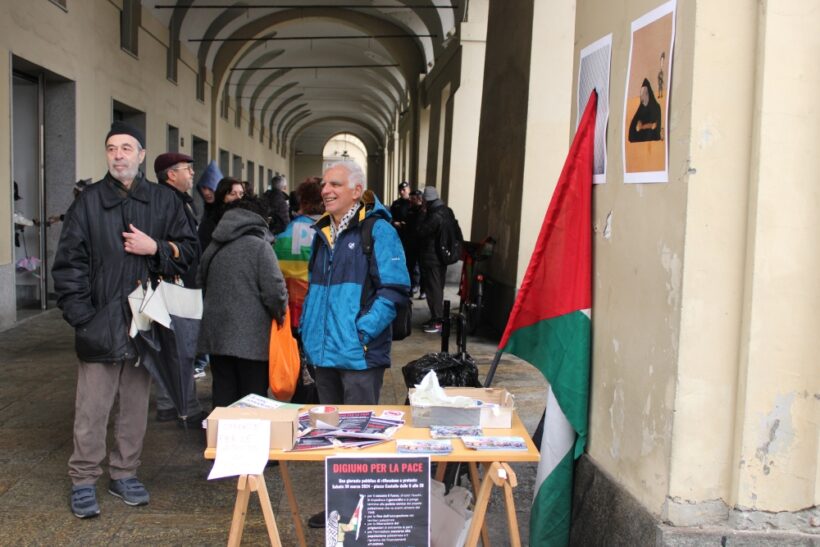 Il Coordinamento Torino per Gaza ha promosso, sabato 30 marzo, una giornata di Digiuno per la Pace che ha avuto come punto centrale il banchetto in piazza Castello dalle 9 alle 20.
