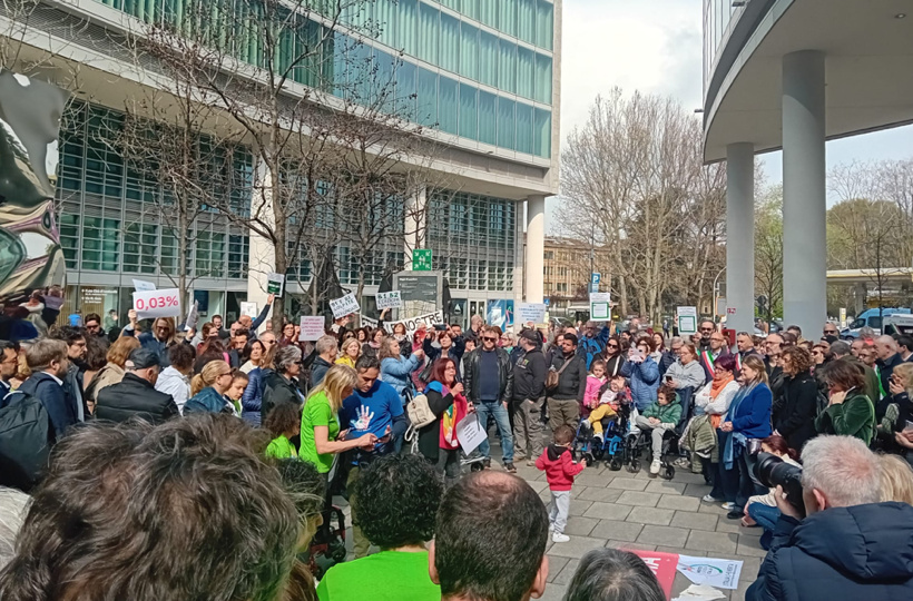 Una manifestazione di grandissima intensità: parlano i familiari, protagonisti di queste vite che l’amministrazione regionale lombarda (in questo caso) sta per mettere in croce con i tagli. La giunta regionale ha infatti da poco approvato una delibera di “Modifica del programma operativo regionale a favore di persone con gravissima disabilità e in condizioni di non autosufficienza e grave disabilità”, che rimodula i tagli ai contributi delle misure B1 e B2 in accordo alla riforma dell’attuazione dei LEPS (Livelli Essenziali Prestazioni Sociali). Modifiche annunciate in pompa magna come migliorative ma che, nei fatti, dal 1 giugno rimanderanno ai comuni – già in crisi dal punto di vista delle risorse umane ed economiche – l’erogazione di servizi sociali che non saranno mai in grado di erogare con le risorse ridicole messe a disposizione e un sistema già dimostratosi inefficace.