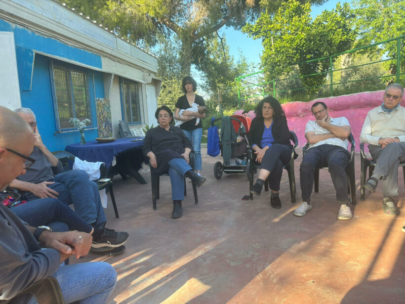 Abbiamo chiesto a persone specifiche che conoscevamo che avevano perso parenti e ad altri amici di venire e condividere tutto ciò che desideravano condividere. Ci siamo seduti in cerchio e abbiamo avuto un moderatore. Nel primo circolo ha parlato un medico che da anni andava regolarmente a curare a Gaza e lì ha molti contatti e ha perso molti colleghi e amici. Ha parlato della situazione sanitaria, di quanto fosse grave prima della guerra e di quanto sia estrema oggi. Un altro membro che ha parlato vive e lavora nella zona di Gaza e ha perso buoni amici e colleghi*. La sera dopo abbiamo avuto i due abitanti del villaggio che avevano perso così tanti familiari a parlare nel cerchio. La maggior parte del villaggio ha saputo della scomparsa dei primi solo questa sera. Lei ha parlato dei suoi ricordi di bambina in visita alla sua famiglia, di Gaza come di un bellissimo e divertente luogo di vacanza dove non vedeva l’ora di andare. Ha parlato della sua ricca famiglia che durante l’assedio ha perso tutto e aveva bisogno del sostegno economico dei propri familiari e ha parlato della tragedia che, a quanto pare, ad oggi ha raggiunto oltre 100 morti solo tra i suoi parenti. Ha continuato e ha condiviso quanto sia difficile per lei sul posto di lavoro, dove non esiste un ambiente sicuro in cui possa esprimere anche la sua sofferenza.