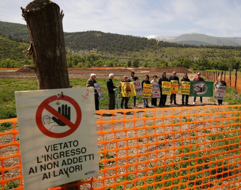 Attivisti per il clima, contro le fonti fossili e per lo sviluppo delle fonti energetiche rinnovabili sono entrati all’interno del cantiere di Case Pente a Sulmona, dove la Snam intende costruire la sua centrale di compressione a servizio del metanodotto Linea Adriatica: una grande opera inutile e dannosa che dovrebbe attraversare i territori più altamente sismici dell’Appennino. Gli attivisti recavano bandiere e cartelli con su scritto: “Il cantiere Snam è illegale”.,“Fuori la Snam dal nostro territorio”, “Metano killer del clima”, “Non lasceremo cancellare la storia degli antichi Peligni”, “Spendere 2 miliardi e 500 milioni per un’opera inutile e dannosa è un crimine economico”, “No ai combustibili fossili, salviamo il Pianeta”.
