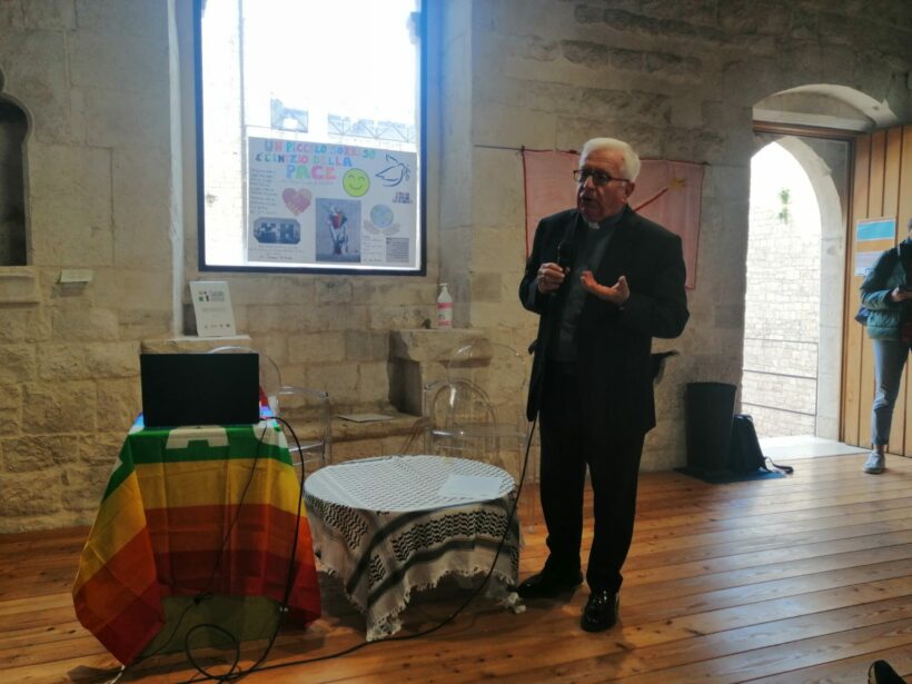 Alle 17 al Castello di Bisceglie l’inaugurazione ha visto gli interventi di Padre Alez Zanotelli e del Sindaco di BisceglieAngelantonio Angarano di fronte a un pubblico numeroso e attento.