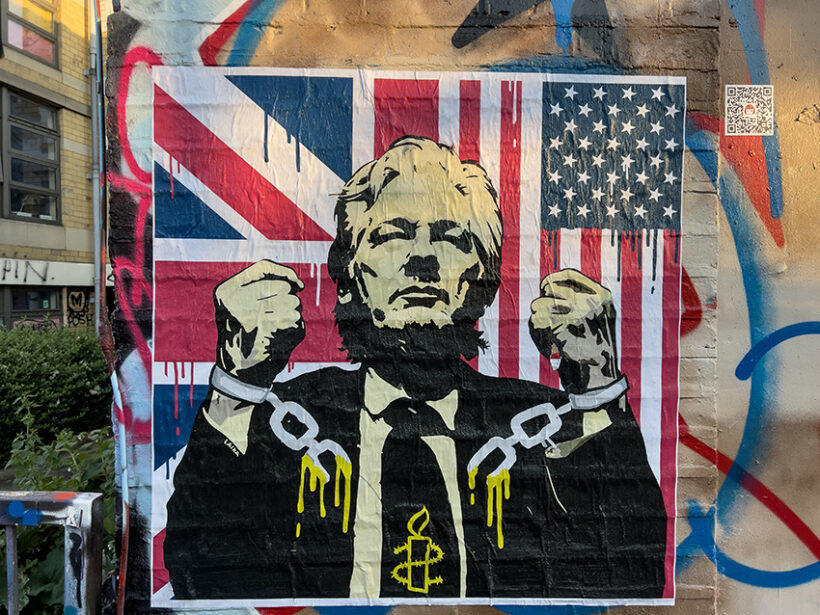 “Julian Assange rischia seriamente di essere sottoposto a violazioni di diritti umani se venisse estradato negli Stati Uniti”, ha dichiarato l’artista.