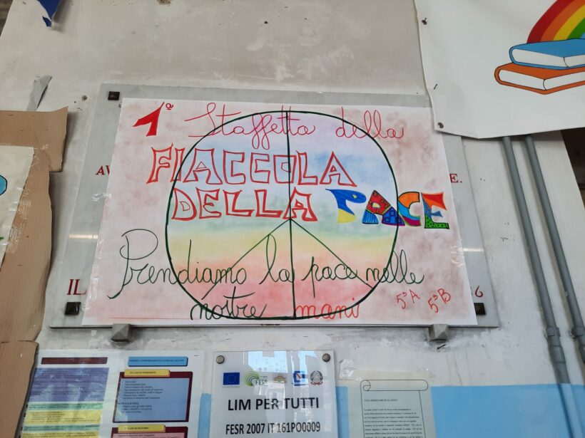 Al plesso Giampaglia dell’IC Ercolano 2, è arrivata la prima staffetta della “Fiaccola della Pace”. Ovunque la Fiaccola della Pace giunge, succedono cose straordinarie. Le classi quarte e quinte hanno dato vita ad una bellissima cerimonia di accensione della Fiaccola consegnata dalla Presidente del Movimento per la Pace, Agnese Ginocchio, all’alunno rappresentante dell’Istituto. Gli alunni hanno presentato i loro lavori realizzati per la giornata della Pace, cartelloni esposti ai muri con frasi sulla Pace, significative riflessioni e poesie da loro composte e declamate, messe tutte insieme nel “Quaderno della Pace” che poi hanno consegnato ad Agnese in ricordo della giornata, dopodichè anche in veste di “cantautrice per la Pace”, coadiuvata dalla Dirigente scolastica Giovanna Tavani che ha guidato i bambini al canto, ha presentato, eseguendo dal vivo con la chitarra, il suo brano “La Nonviolenza è l’unica arma della Pace (Cessate il fuoco)”. A conclusione in segno di ringraziamento a nome del Movimento Internazionale per la Pace promotore dello storico evento partito dall’anno 2014 legato al tema dei percorsi della memoria dei 100 anni di guerre, alla scuola è stato consegnato un Attestato Speciale di “Scuola Aperta alla Pace”. E infine… una menzione speciale con “Encomio di Pace alla Carriera” alla Dirigente Scolastica Giovanna Tavani per il suo continuo impegno di storica attivista per la Pace nel corso degli anni, l’attestato consegnato dalla Presidente Ginocchio è stato accompagnato dal ramoscello di ulivo dell’Albero della Pace e la spilla del Movimento che viene consegnata solo ai soci più stretti e che la DS ha subito indossato. “Grazie grande Dirigente per avere accolto la Fiaccola nella tua scuola, per avere dato la possibilità ai tuoi alunni in tempi di guerra di riflettere su questo grande valore universale che va custodito, protetto e affermato con le azioni quotidiane. Non potrà esserci un futuro senza Pace. Un sentito ringraziamento alle docenti che hanno lavorato con gli alunni e a quanti hanno collaborato per la buona riuscita della manifestazione” il messaggio della Presidente del Movimento per la Pace.