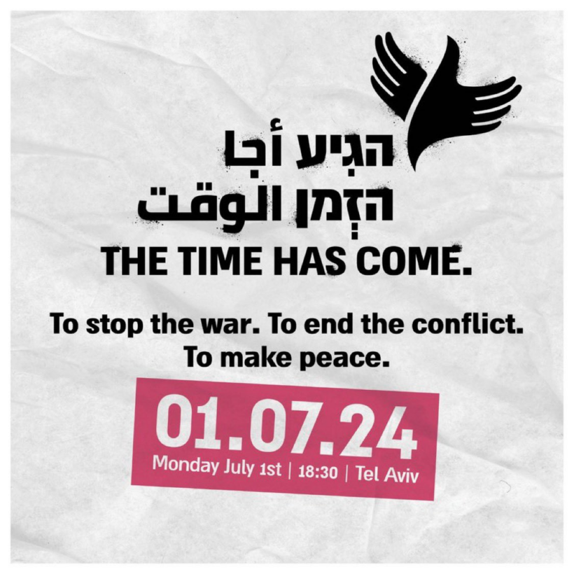 Il 1 luglio a Tel Aviv si sta realizzando una grande mobilitazione per dire no alla guerra, per la fine del conflitto e per un nuovo accordo di pace.