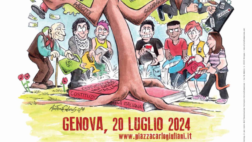 E poi il giorno successivo che sarà sabato, dalle 14,30 in poi, ci ritroveremo tutti come ogni anno a Piazza Alimonda. Innanzitutto, per la premiazione delle tesi vincitrici delle Borse di Studio messe in palio dal Comitato Piazza Carlo Giuliani. E poi con le poesie di Biancamaria Furci, seguite da un ricordo del caro amico e compagno Arnaldo Cestaro recentemente scomparso, con le parole di Lorenzo Guadagnucci – e da una serie di interventi musicali, con i gruppi Stazione Rossa, Contratto Sociale Gnu-Folk, Alessio Lega con Guido Baldoni e Rocco Marchi… e tanti altri.