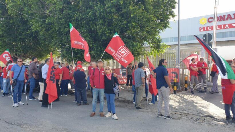 Si è svolta oggi 16 settembre la prima giornata di sciopero – accompagnata da una manifestazione e da un presidio davanti i cancelli della Newcoop di Carini, l’azienda che gestisce la logistica per la Conad Sicilia – per protestare contro il licenziamento di Francesco Loria, R.S.A. della Filt-Cgil, e contro le sanzioni disciplinari decise dall’azienda per altri 5 lavoratori, colpevoli di avere messo al centro delle loro rivendicazioni le problematiche legate alla salute e sicurezza e all’organizzazione del lavoro nella loro azienda.
