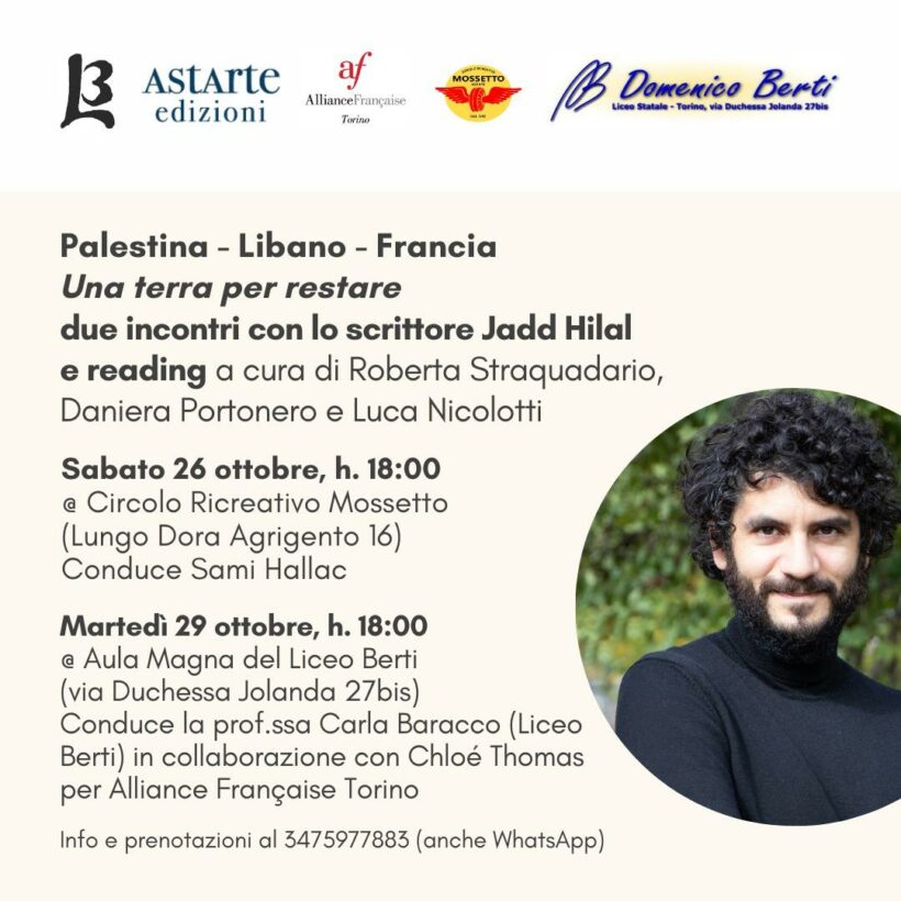 Doppio appuntamento torinese + reading con lo scrittore Jadd Hilal, autore di “Una terra per restare” (Astarte 2024).