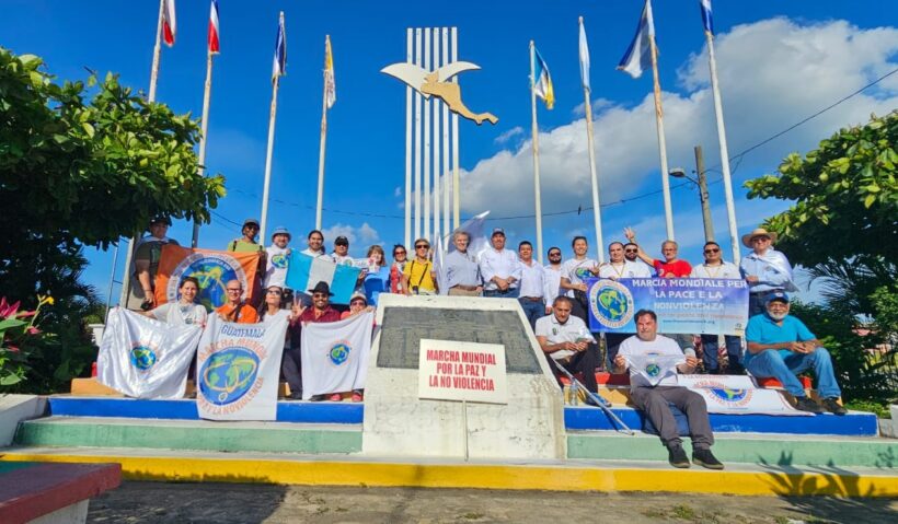 Il 7 ottobre il Guatemala ha accolto ufficialmente la Terza Marcia Mondiale per la Pace e la Nonviolenza. Una carovana composta da marciatrici, marciatori, ciclisti e pulmini è partita dalla dogana di Aqua Caliente, al confine con l’Honduras, per giungere al Monumento della Pace nel centro di Esquipulas. Qui, i partecipanti sono stati ricevuti dal sindaco Carlos Alberto Portilla Palma e da altre autorità locali.