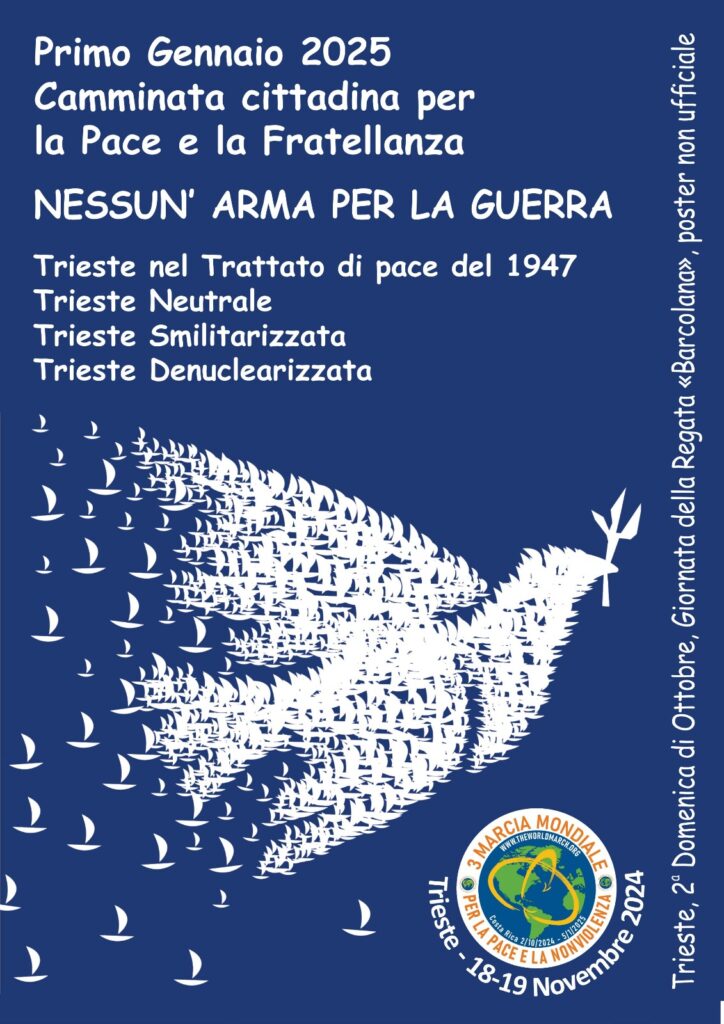 Domenica 13 durante la regata velica triestina verrà distribuita, da parte del “Comitato Pace Convivenza e Solidarietà’-Odbor za mir- Danilo Dolci” e “Mondo Senza Guerre e Senza Violenza”, una piccola ma significativa cartolina con la storica colomba, in un mare di pace.