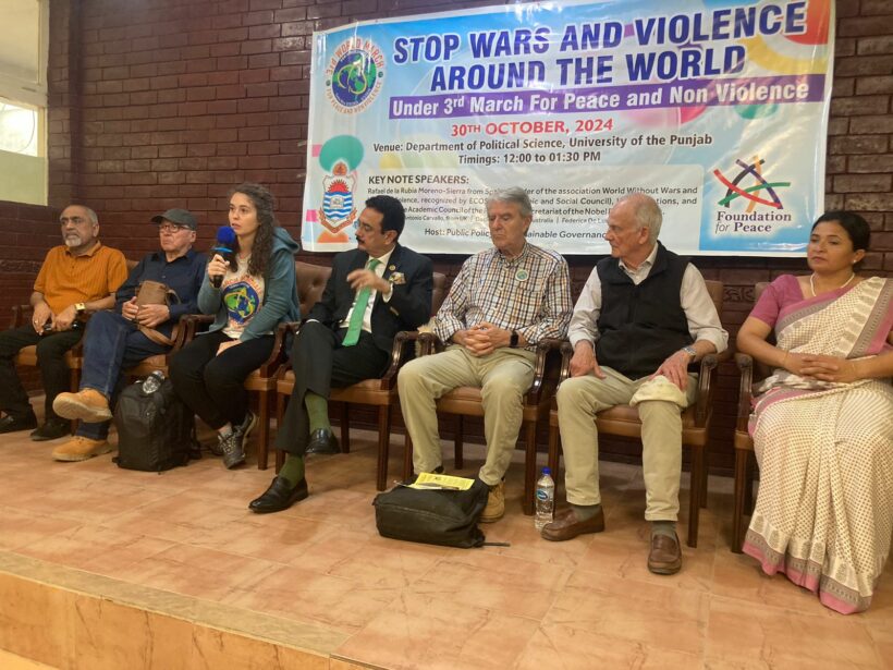 Nella giornata del 30 Ottobre 2024 la Terza Marcia Mondiale per la Pace e la Nonviolenza è arrivata a Lahore, Pakistan. Quattro gli incontri in diversi dipartimenti delle numerose università locali (Institute of Education Research e facoltà di Scienze Politiche – Punjab Univeristy, University of Management and Technology, Minhaj University).