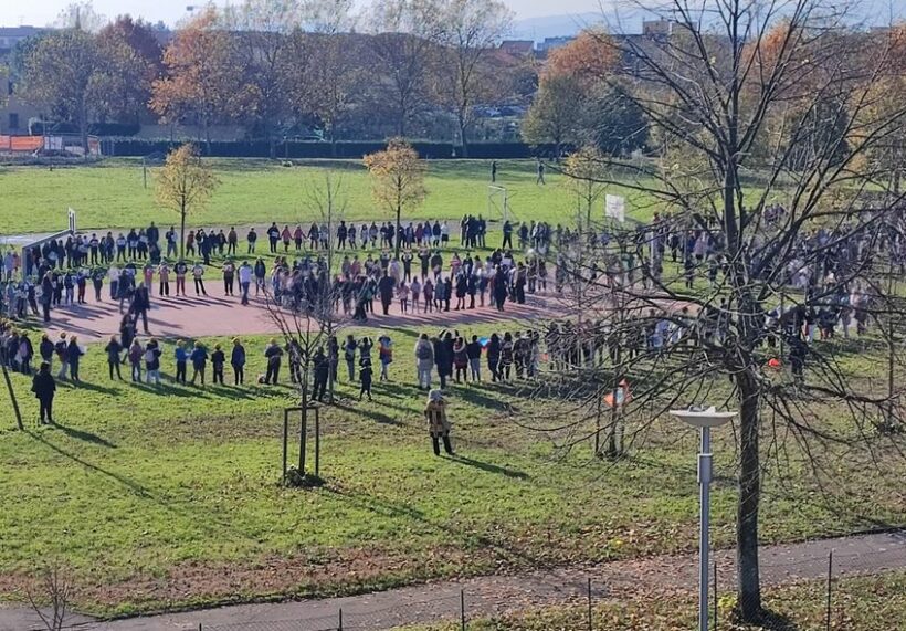 Un paio di centinaia di festosi bambini delle scuole di Prato hanno aderito all’iniziativa “le scuole in marcia per la Pace e la Nonviolenza”, nel contesto della Terza Marcia Mondiale per la Pace e la Nonviolenza che in questi giorni è passata per l’Italia, cantando, mostrando i loro disegni e formando due grandi simboli umani, uno della Pace e uno della Nonviolenza nel parco Guado Sud.