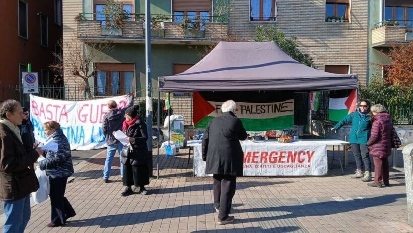 Milano, zona Sud, cittadini, associazioni, realtà sociali e territoriali scendono in piazza e danno vita a un presidio permanente per opporsi a tutte le guerre e ai continui massacri di civili, donne, bambini, sanitari e giornalisti in Palestina e non solo.