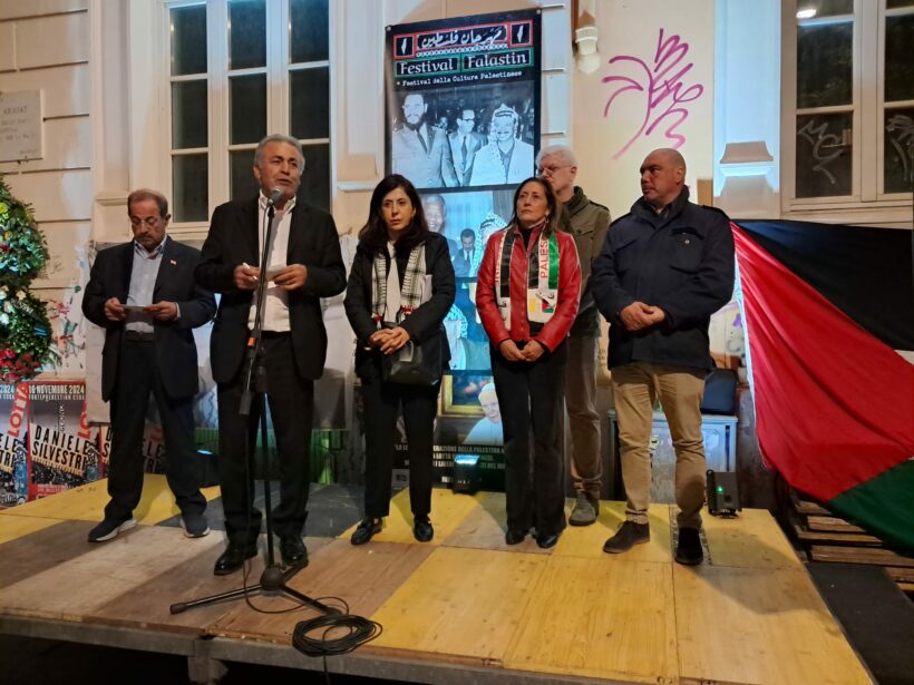 Un nutrito gruppo di rappresentanti delle organizzazioni di sinistra extraparlamentare e non, con la presenza anche dell’ambasciatrice del Nicaragua, nonché della comunità libanese, ha voluto rendere omaggio a questa figura e soprattutto testimoniare la vicinanza al popolo palestinese e alla sua causa. E’ stata ribadita la richiesta al governo italiano, alla comunità europea e all’ONU non solo di un cessate il fuoco e di corridoi umanitari, ma anche e soprattutto di fermare il genocidio in corso, non vendendo più armi ad Israele, sanzionando quel Paese che ogni giorno sta allargando arbitrariamente il fronte di guerra, cosa inaccettabile, così come è inaccettabile che la comunità internazionale rimanga impassibile e inerte.