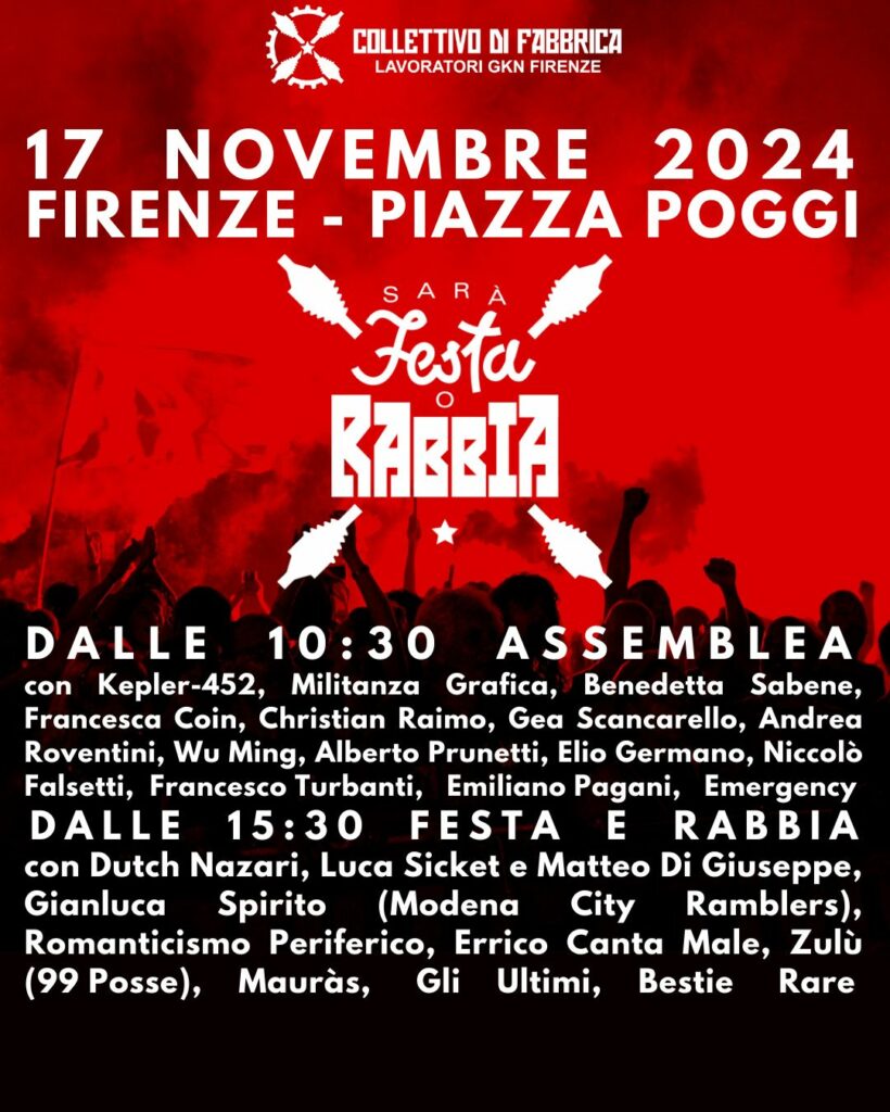 In caso di maltempo, sarΓ  comunicato eventuale cambio di luogo sui canali social, su info Gkn, su insorgiamo.org