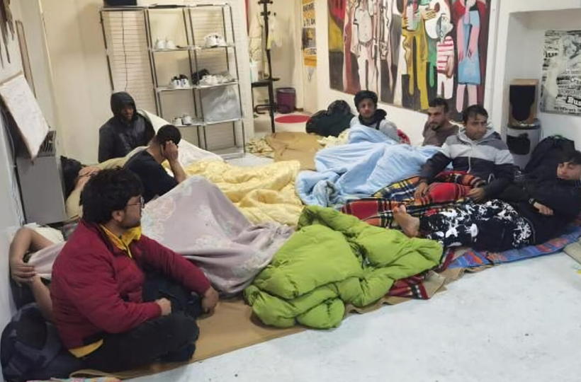 La seconda ospita nella sua sede, con un solo bagno, a spese del volontariato laico, circa 45 giovani , dopo essere stati sgombrati e multati (ahahah) per bivacco da un parcheggio. Unico luogo riparato dove ancora potevano attendere di essere chiamati in Questura, dopo aver tutti manifestato la volontà di chiedere asilo: ad una nazione ad alta democraticità.