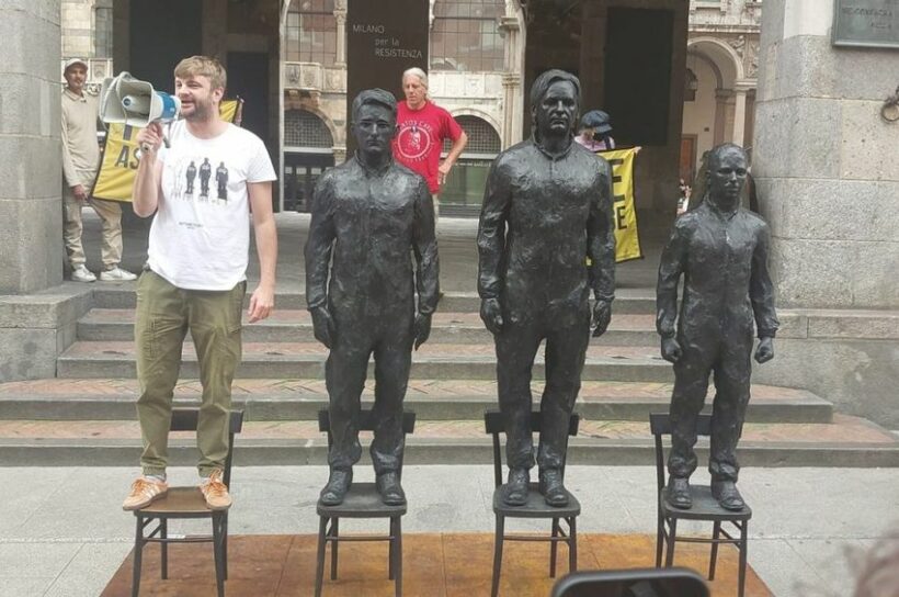 La stessa avversione nei confronti del giornalista australiano è stata poi ribadita quando non fu concessa l’installazione dell’opera di Davide Dormino “Anything to Say: a Monument to Courage”, raffigurante Assange, Manning e Snowden in piedi su tre sedie accanto alle quali vi è una vuota in si è invitati a salire per prendere parola. Poco male in questo caso: il 20 maggio 2024, data del verdetto sull’estradizione, nonostante il diniego del Comune di Milano siamo riusciti comunque a posizionare la statua alla Loggia dei Mercanti e fare ancora una volta una fantastica manifestazione che ha visto, tra gli altri, la presenza di Moni Ovadia e buone notizie da Londra.