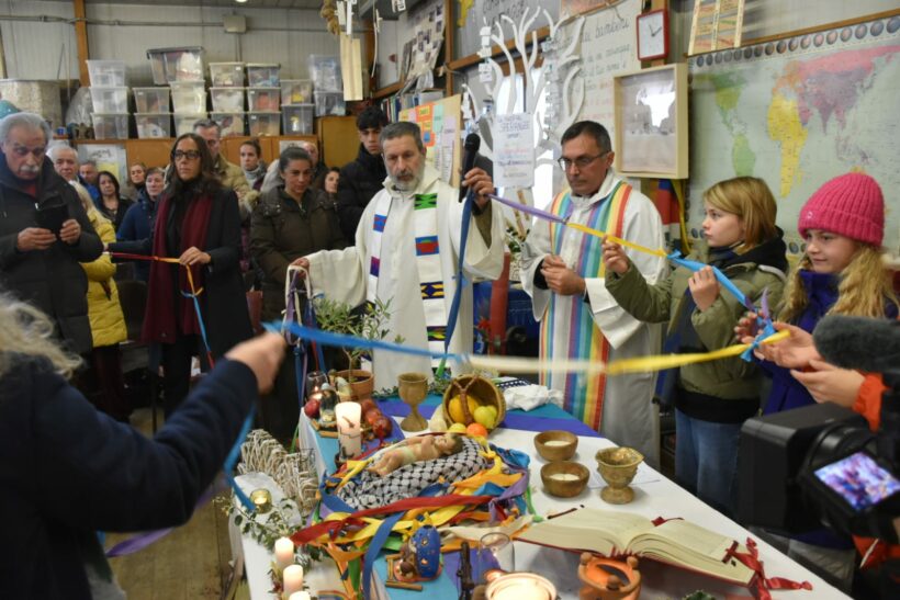 La Messa di Natale alle Piagge si pone nella traiettoria che continua il percorso di testimonianza/e e lo fa in una modalità certamente piena di contraddizioni, lo fa in un modo che non può lasciare indifferenti, che riempie la “chiesa” di simboli tra loro anche divergenti, perché sarebbe riduttivo fare di una collettività un segno solo, di una comunità una parola comprensiva delle diversità. Alessandro e Gherardo: due esseri umani, che hanno provato a tenere insieme quei nastri colorati che durante il gesto dello scambio di un simbolo di pace sono stati annodati (alcuni imbarazzati anche solo nell’incontrare davvero lo sguardo di chi sedeva accanto, altri a proprio agio perché intrecciare è qualcosa di familiare). Nell’augurio di sopravvivere al mare c’è stato potente (credo) l’appello alla Umanità e nella Ballata della Speranza l’augurio di essere donne e uomini di Pace.