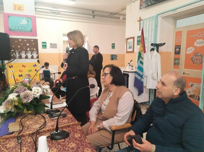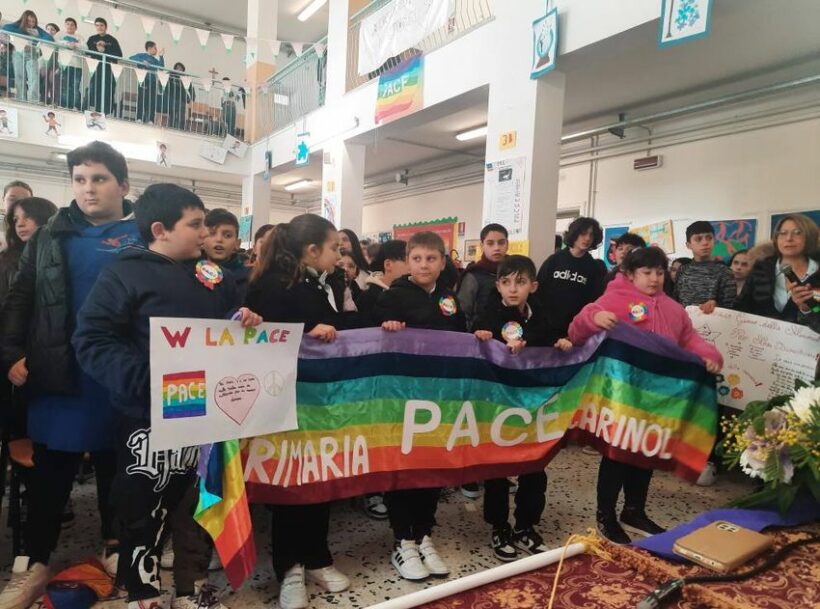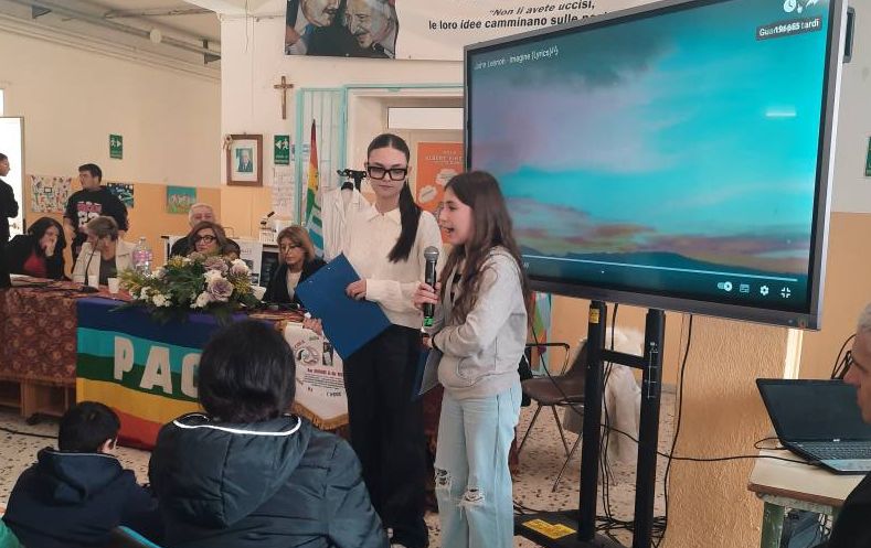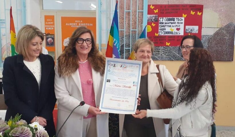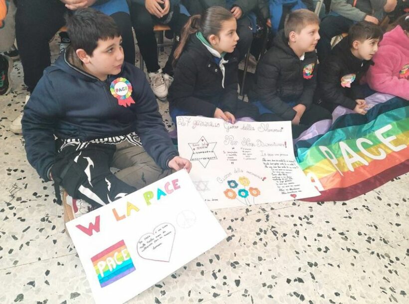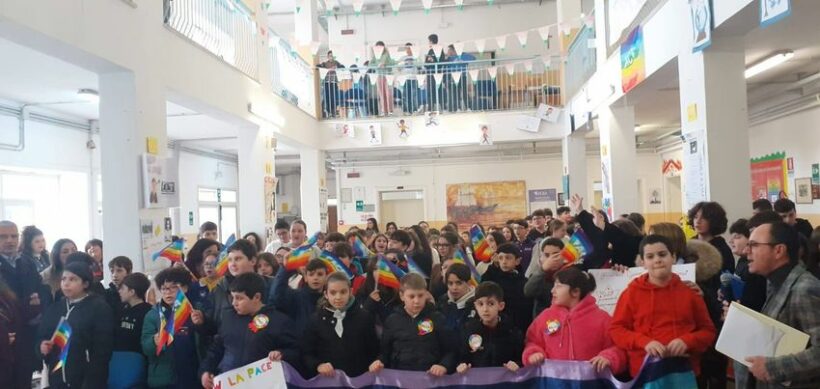 “La Pace è l’ unica via di giustizia, di verità e di libertà tra i popoli. Noi ci crediamo fortemente, crediamo che è possibile realizzare un mondo di Pace partendo dall’educazione scolastica su questi temi. Agli alunni viene continuamente data occasione durante l’anno scolastico, di sviluppare e di riflettere sulle tematiche fondamentali della convivenza civile tra i popoli ”. Ha fatto sapere la Dirigente scolastica nel portare il saluto, a lei poi è stato affidato il compito di ricordare la figura paterna del prof. Antonio Zannini. “Deportato nel campo di concentramento di Dachau e Ritornato in Italia nel 1945, ha dedicato la sua vita all’insegnamento e al dialogo con le nuove generazioni. Nel 2010 gli è stata riconosciuta dal Presidente della Repubblica la medaglia d’onore conferita ai cittadini italiani, militari e civili, deportati ed internati nei lager nazisti e destinati al lavoro coatto per l’economia di guerra”. “Quanto accaduto in passato e quanto accade oggi deve farci riflettere sull’importanza di difendere questo valore. A 80 dalla Shoah, Antonio Zannini figlio di questa terra, diventa oggi per tutti noi un testimone di Pace, ecco perché abbiamo proposto l’intitolazione della Aula dei diritti dei bambini e degli adolescenti alla sua memoria”. Ha esordito la Presidente del Movimento per la Pace Agnese Ginocchio. L’iniziativa si inserisce in prosieguo al percorso di Pace iniziato attraverso la mobilitazione della “Fiaccola della Pace”, che quest’anno celebra il decennale del suo storico percorso.