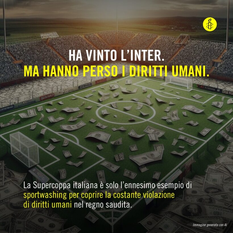 “Eppure l’obiettivo dell’Arabia Saudita, così come di altri stati della regione come gli Emirati Arabi Uniti, il Qatar e il Bahrein, resta sempre lo stesso: usare lo sport, in particolare il calcio, come strumento di politica estera per promuovere la parte buona di sé e far dimenticare il resto, ovvero la pessima situazione dei diritti umani”, ha dichiarato Riccardo Noury, portavoce di Amnesty International Italia.
