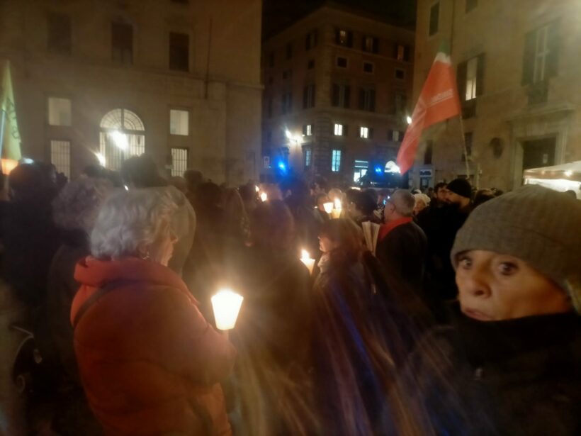 Ieri sera  appena dopo le 18.00, orario di convocazione della manifestazione contro il DDL sicurezza a Roma in Piazza S. Andrea della Valle, a due passi da palazzo Madama proibito ai manifestanti, c’erano ancora quasi solamente gli organizzatori. I volontari di Amnesty distribuivano candele, le bandiere dell’ANPI non erano ancora aperte e quelle della CGIL non erano ancora pervenute, come alcune altre che si sono aggiunte successivamente. Molte macchine fotografiche e tante testate giornalistiche alla ricerca di personalità da intervistare.