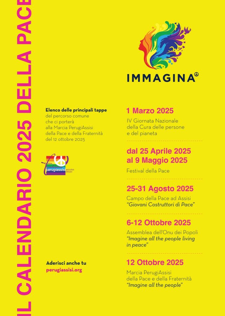 Il prossimo 12 ottobre 2025 ci ritroveremo insieme per camminare da Perugia ad Assisi. Ma la Marcia della Pace e della Fraternità è già cominciata. Unisciti a noi. Vedi le tappe principali del cammino che abbiamo intrapreso e, se vuoi fare la tua parte