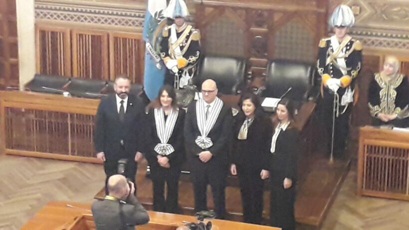 Sette diplomatici – Lussemburgo, Malta, India, Algeria, Australia, Repubblica Ceca e Palestina – presentano le loro credenziali ai Capitani reggenti Francesca Civerchia e Dalipor Riccardi alla presenza del Ministro degli Affari Esteri, Luca Beccari.