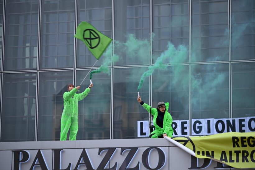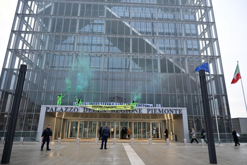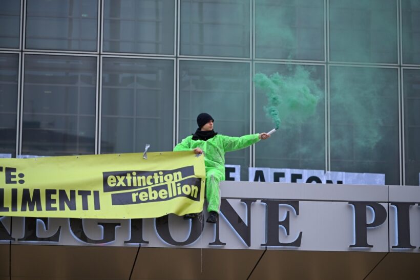 Extinction Rebellion ha incollato una maxi-scritta sulla tettoia all’ingresso del Grattacielo della Regione Piemonte: “La Regione osserva, il Piemonte affonda”, insieme a uno striscione con scritto “Un altro anno di fallimenti”. Il gesto denuncia l’assenza di azioni concrete dopo la dichiarazione di emergenza climatica approvata cinque anni fa, mentre l’Italia è stata colpita da eventi climatici estremi. “Cinque anni di impegni non mantenuti, chi pagherà per questa inazione?”.