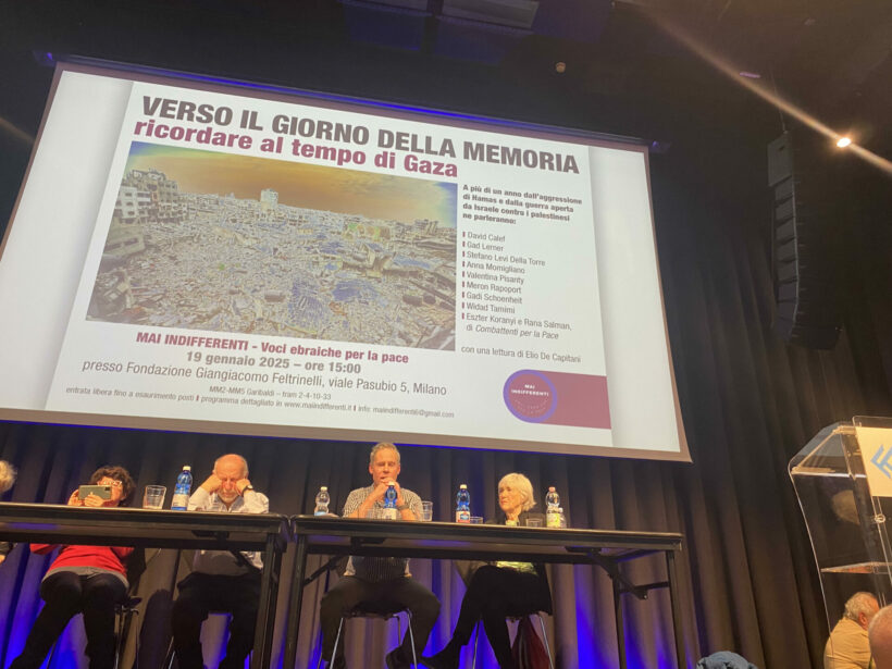 Questo è il titolo dell’incontro a cura di Maiindifferenti – Voci ebraiche per la pace tenutosi domenica 19 gennaio nel salone gremitissimo della Fondazione Giangiacomo Feltrinelli a Milano. Malgrado, per quanto riguarda la stampa tradizionale e non, sia stato citato dalla sola Radio Popolare lunedì 13 nella trasmissione sui diritti condotta da Danilo De Biasio alle 7,05 del mattino e annunciato da Pressenza il 7 gennaio, il tam tam e passaparola sui social ha funzionato.