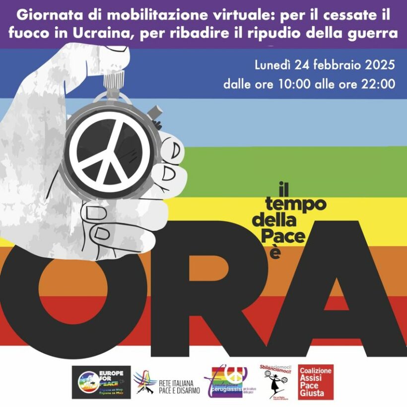 Invitiamo a far sì che il prossimo 24 febbraio, con la maratona virtuale e nelle piazze (anche nei giorni precedenti) diventi occasione di mobilitazione e di riflessione per capire il perché e le responsabilità, per fare i conti con questa guerra europea, per ascoltare le voci della nonviolenza e per ribadire che esiste un’alternativa alla guerra: la politica di pace.