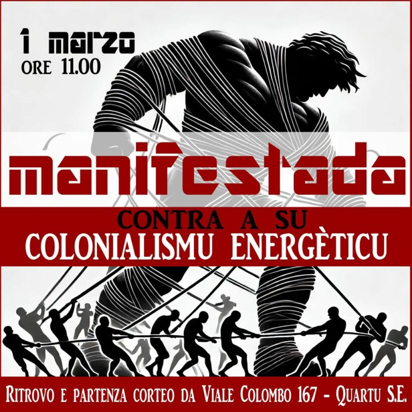 Il prossimo 1° marzo si terrà a Quartu Sant’Elena (CA) una Manifestada contra a su colonialismu energèticu (Manifestazione contro il colonialismo energetico), che si inserisce all’interno delle mobilitazioni che da oltre due anni contrastano il piano di speculazione energetica imposto dal governo Draghi e proseguito dal governo Meloni senza consenso popolare: la costruzione di un maxi condotto elettrico affidato a Terna – il Thyrrenian Link – ai fini di collegare Sardegna e Sicilia al continente per il trasporto dell’energia prodotta sulle isole e l’occupazione di ettari ed ettari di terreni per l’installazione di pale eoliche e pannelli fotovoltaici.
