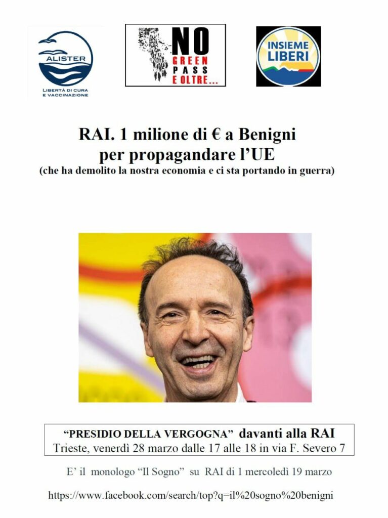 Dicono che non ci sono i soldi per la sanità, per l’istruzione, per salari e pensioni…ma trovano subito un milione di euro per un giullare di regime, che va nella televisione pubblica a incensare un’Unione Europea, intenzionata a spendere 800 miliardi all’anno per preparare la terza guerra mondiale con la Russia…