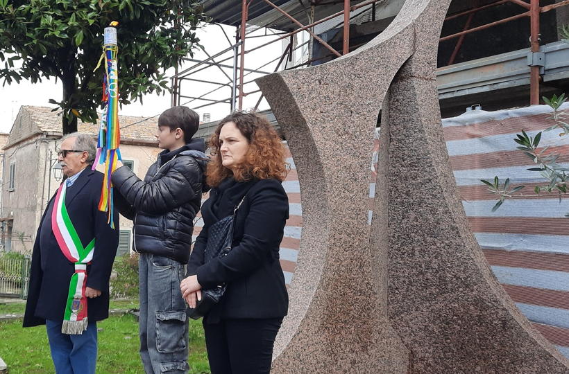 Portata dalla Presidente del Movimento Internazionale per la Pace Agnese Ginocchio e consegnata alla Dirigente scolastica Maddalena Di Cerbo, alla presenza del Sindaco di Galluccio, Franco Lepore, con lui presente anche il Vice Sindaco Vitale De Cubellis, la Fiaccola è stata consegnata al rappresentante della scuola per guidare il corteo della Pace e per rendere onore presso il Monumento ai caduti di tutte le guerre, dove si è fatta una prima sosta, tutti i figli di questa terra che hanno dato la vita durante le guerre di liberazione per difendere l’alto valore della Libertà.