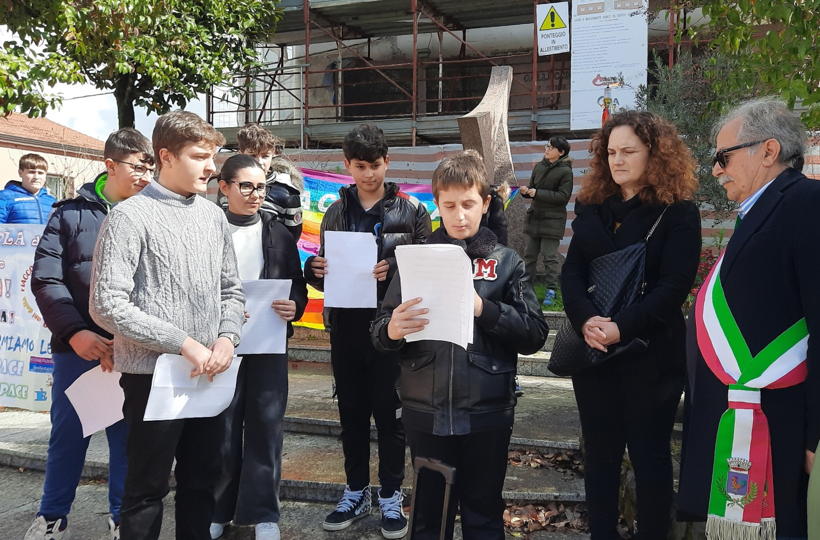 “I nomi scolpiti su queste lapidi di marmo ricordano a ciascuno di noi quanto sia importante ricordare, fare memoria. Le nostre terre hanno conosciuto gli orrori della guerra. Viviamo oggi un momento davvero difficile, soprattutto in Europa perché nessuno si aspettava quello che è successo, ma non solo in Europa: anche in tante parti del mondo, le guerre continuano a colpire la stabilità e a mietere vittime e tra queste tanti bambini. Quanto finirà tutto questo? Ringrazio la Dirigente scolastica, le docenti e voi tutti alunni che avete realizzato questa bella giornata della Pace. La Pace è un progetto fondamentale che dobbiamo realizzare a partire dalla pace interiore. Purtroppo non sempre si riesce nell’intento poiché nella mente di qualcuno si coltivano sentimenti di guerra. Per questo invito voi ragazzi a isolare e a non frequentare chi propina messaggi di conflittualità impedendo il dialogo tra le parti e sprono voi tutti a continuare a scegliere questa strada per avere speranza di vivere in una società migliore”, ha esordito il Sindaco Lepore.