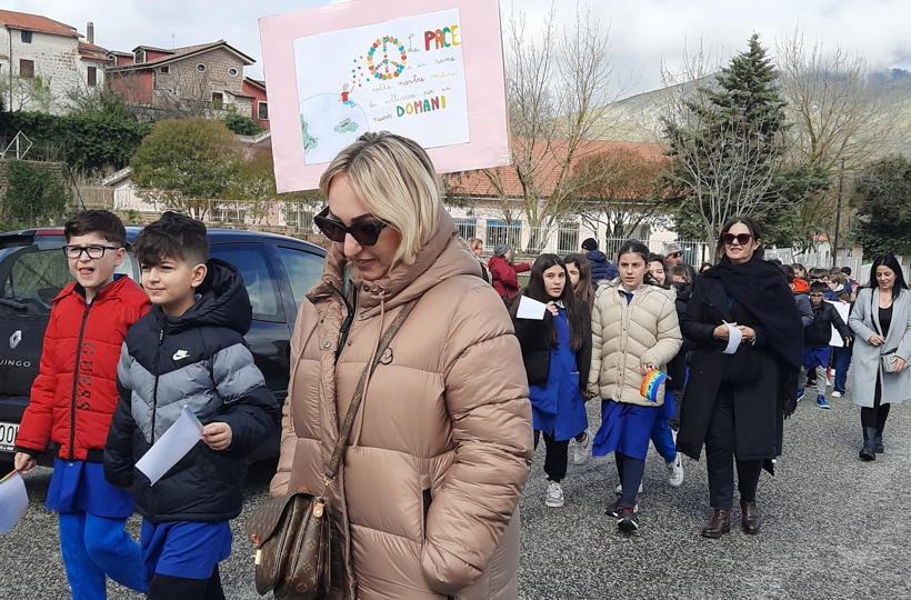 La Fiaccola della Pace in marcia con gli alunni del IC per il Cessate il Fuoco ed il “No” al riarmo, dagli alti monti del Parco Regionale di Roccamonfina nell’alto casertano. Una splendida giornata di sole nonostante le condizioni meteo avverse, ha permesso agli alunni di scendere nelle piazze principali del borgo montano e marciare per la Pace, per esprimere il loro desiderio più grande, la Pace, che è il “Bene assoluto della storia”.