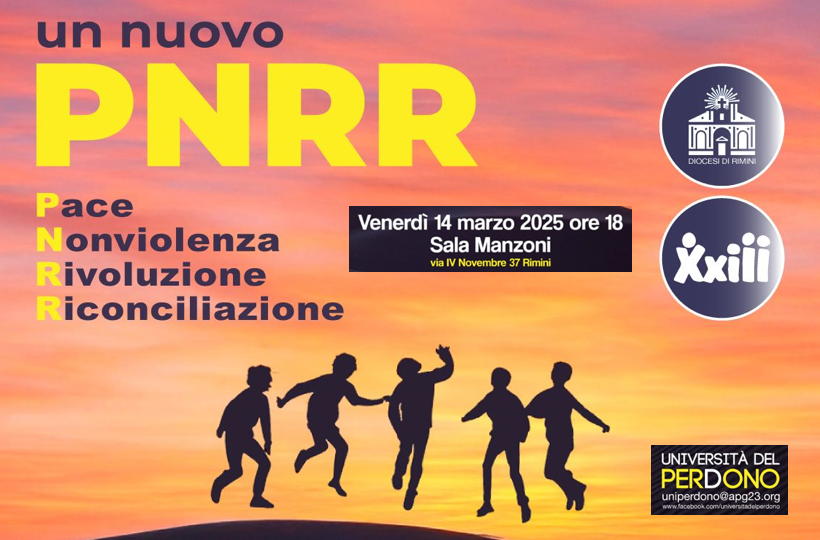 Venerdì 14 marzo alle 18 a Rimini, in sala Manzoni (Via IV Novembre 35) è in programma il seminario annuale dell’Università del Perdono, dal titolo “Un nuovo PNRR. Pace, Nonviolenza, Rivoluzione, Riconciliazione”.
