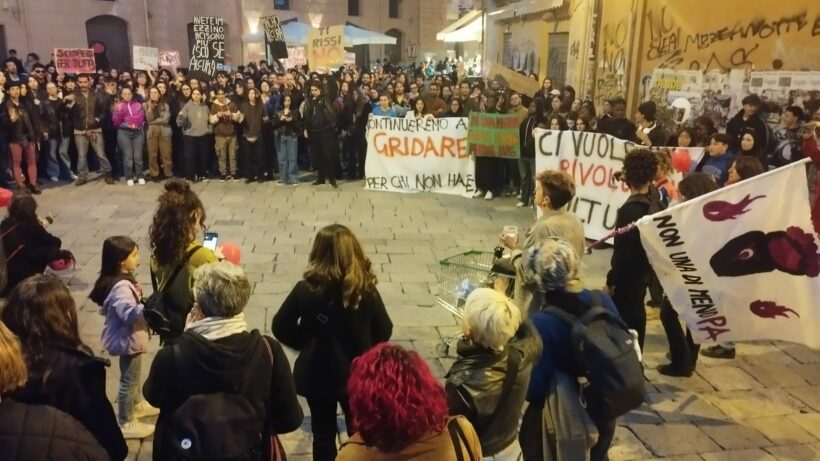 Al microfono si alternano compagni e compagne, sorelle, i cui interventi bene saranno rappresentati subito dopo dai volti giovani che aprono la “passeggiata arrabbiata” per le vie del centro all’ora dell’aperitivo.